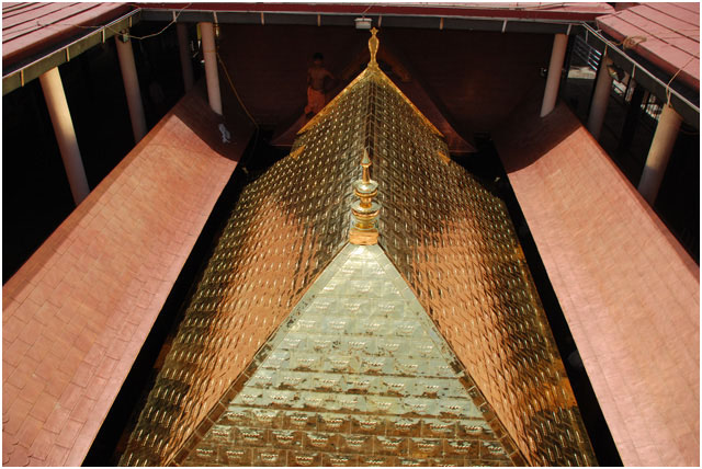 The Coimbatore Sree Ayyappa Seva Sangham has taken up the divine project of the Gold Plating the roofing of the Sreekovil, which was an ever cherished desire of Ayyappa Bhakthas. The project costs about 8 Crores. This includes the cost of high quality Kerala Teakwood, High quality Copper and Brass Sheets, and 24 Ct. gold.